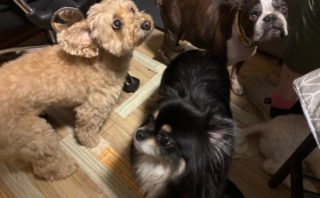 少しお休みしましょう・・・お座りしながら、大きな舌を出して、大満足の表情です。(一緒にハアハア・・・)