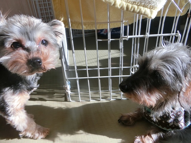 隊長に新年のごあいさつに来たヨーキーちゃん。さすがはリーダー、貫禄が違いますね。
