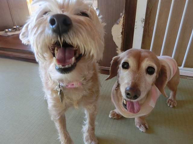 数日間一緒に過ごすうち、すっかり仲良くなったmixちゃんとダックスちゃん。