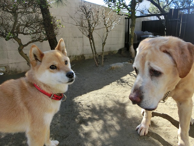 今年14歳になるラブくんと再会した柴お嬢さま。今までも何度か一緒に滞在する機会があり、