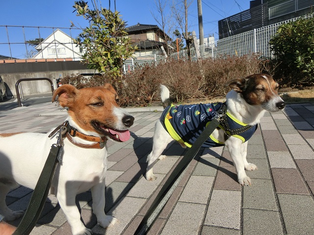 ハレバレとしたお天気で、絶好のお散歩日和。公園でしばし日向ぼっこして、またお散歩再開。