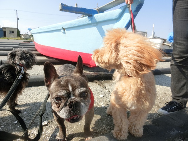 ちょっと足を伸ばして海岸まで来た仲間たち。リーダーはもちろんこの方、フレブルさんです。