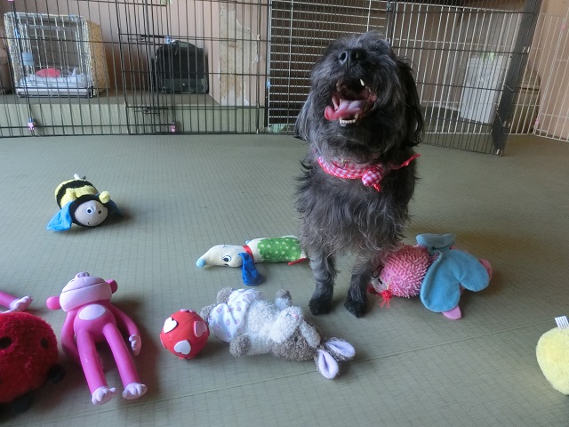 長期組のmixちゃん、長い滞在になるので、たくさんおもちゃを持ってきました。