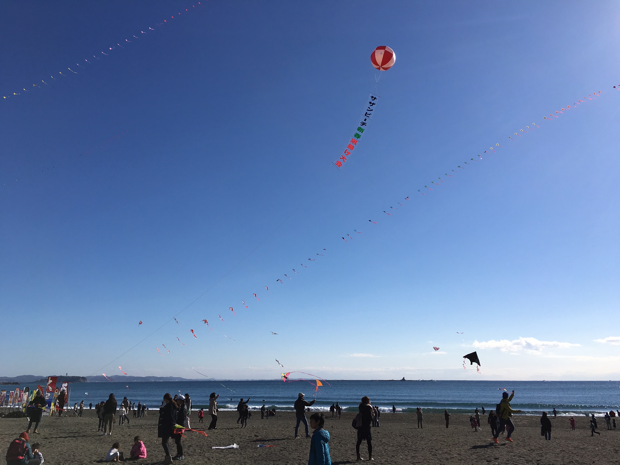 <茅ヶ崎海岸の凧揚げ大会>たこたこ上がれ!