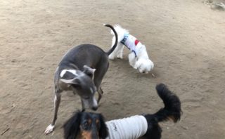 元気でハツラツとしております。初めて会ったボストンちゃんも、トコトコやって来てクンクンごあいさつ。