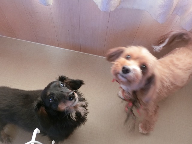 築いてくれています。シニアダックスさんも、若い子たちに負けず朝から元気にお部屋を歩いて準備体操。