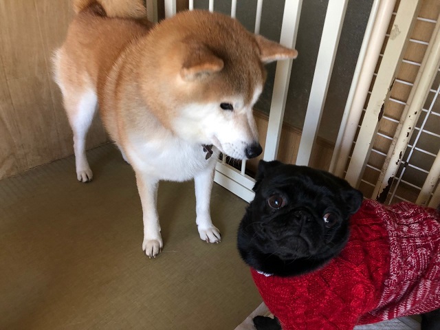 初対面の柴さんですが、とてつもなく大らかで優しいオーラを放っているので、パグちゃんもすっかり安心