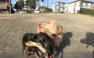 先輩のダックスさんがしきりにクンクン。いつもなんだか素敵な香りをまとっているシーズーくん