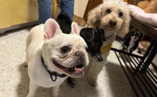 ちょっと長く滞在していたビションちゃんは、すっかり落ち着いた雰囲気で、新入りさんとの
