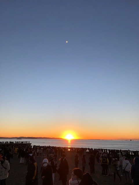 初日の出を見に行ってきました。とても冷え込んでいたのですが、たくさんの人で賑わっていました。