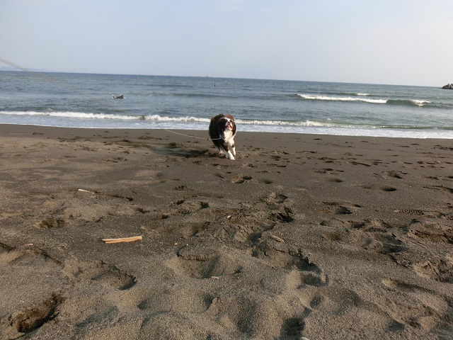 海岸のお散歩。人がいなくてほぼ貸切状態だったので、リードを少し伸ばしてよーいドン!!