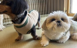 お泊りチームのジャックちゃんとベテランさんのトイプーちゃん。今日も日当たりの良いお部屋は