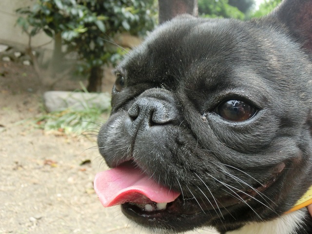 すてきな微笑みを頂きました。きれいなアーモンド型の目に、黒に映える鮮やかなピンクの舌。