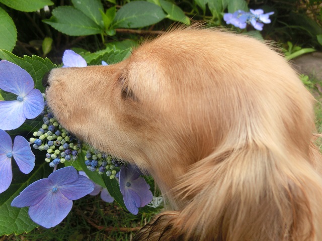 〈のんびり過ごせる一軒家のペットホテル〉たまには 店舗ブログ 2014.06.15 好評の?あじさいシリーズ。こんなメルヘンな一場面が撮れました。このちょっと前までは、お庭を爆走 してたんですけどね(笑)休憩タイムにお花なんかをくんくん。乙女な一面を見せてくれました。 お花の青紫がまたいい感じのしっとりした雰囲気を醸し出してます。毎日いる子でも毎回違った表情に出会えます。 湘南のペットホテル、梅雨もちょっと一休みで、わんこたちはお外にいられるのが嬉しいみたいです。