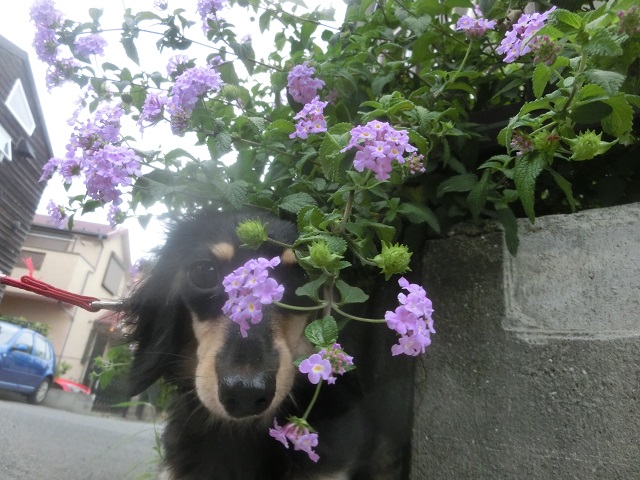 ひょっこりお花の妖精さん現る!!この時期にしか見られない犬に似た妖精で、お花の間からじーっと見つめて…去っていく…らしい