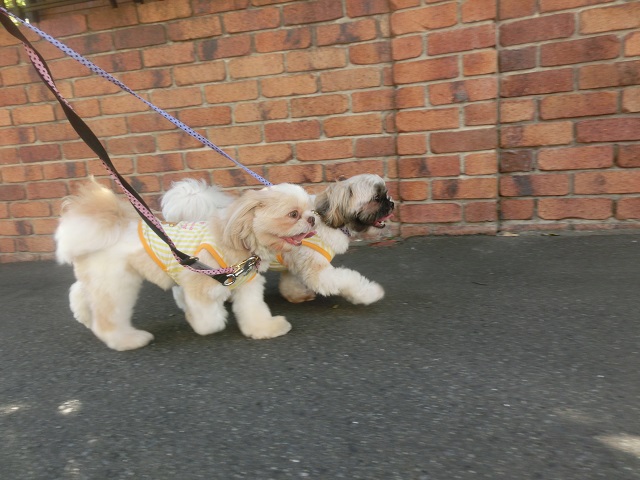 <お散歩大好き!湘南茅ヶ崎のペットホテル>ルン♪ 店舗ブログ 2014.08.20 あっるっこーあっるっこー♪わたしたちは~げんき~ビスケット~も~だ~いすき~♪ ルンルンでこんな鼻歌が聞こえてきたような…とっても嬉しそうな表情をキャッチできました! いつもお揃いのペアルック兄弟、足並み揃えてテクテクテク。まるで動くぬいぐるみ。可愛すぎます♡ 湘南のペットホテル、海岸近くの住宅街にて、夏の暑さにもマケズ、丈夫な体が何よりですね!