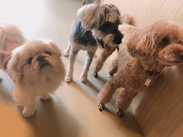 お泊りチームのペキちゃんやトイプーちゃん、さっきまでルームメイトたちとあいさつしたり
