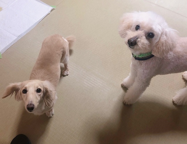 このあと、トイプーちゃんはいつもの”ストレッチなでなで”、ダックスちゃんは兄弟たちと一緒に