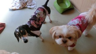 控え目チワワちゃん、初対面のシーズーミックスちゃんとクンクン上手にごあいさつしていました。