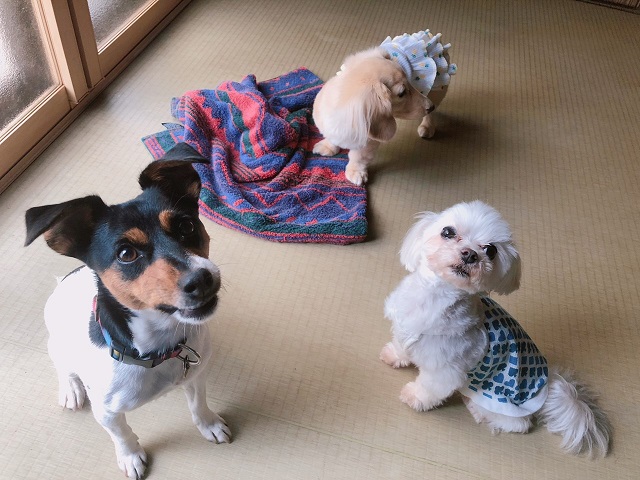 ということで、ジャックちゃんも遊び仲間とプロレスごっこをしたし、マルチーズくんはお庭で