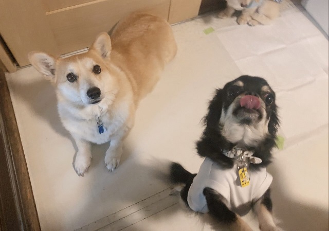 おりますが、その後ろでは”超”マイペースコーギーちゃんが様子を眺めております。