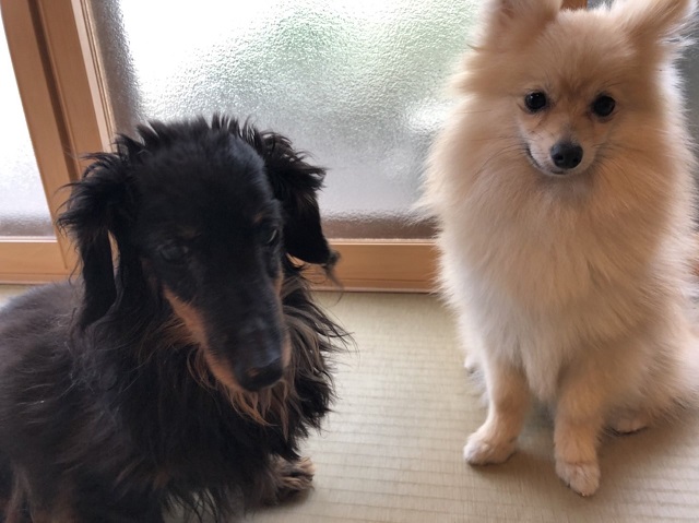 御年17歳になるダックスちゃんとパピーポメちゃん。歳の差はかなりありますが!お互いクンクン