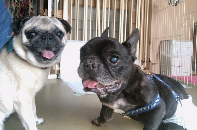 初対面のパグちゃんとフレブルちゃん。歳の差はかなりありますが、そんなことは