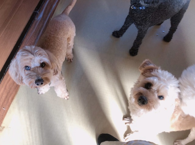<わんこたちの憩いの場、湘南茅ケ崎のペットホテル>見つめるふたり