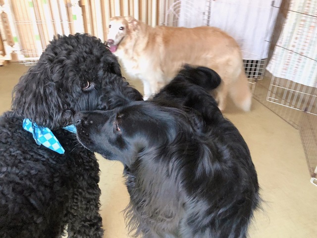 ミックスちゃんは、ドゥードルちゃんとは初対面なので、このあとちょっと慎重に、