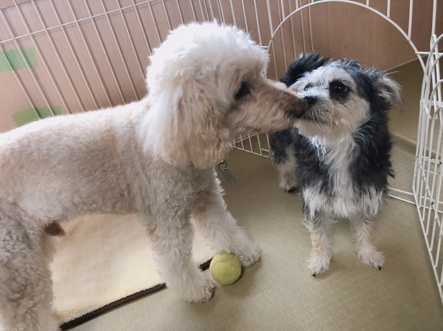 ですが、この時は上手に先輩トイプーくんとクンクンできました。