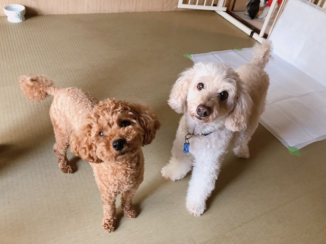 ベテラントイプーちゃんコンビ、ふたり揃ってちょこんと佇んでいたので、一枚いただきました。
