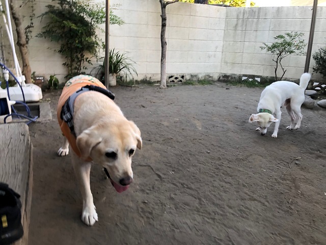 御年14歳のラブちゃん、お庭へ出ると一所懸命トコトコ歩いてくれます。通りすがりに