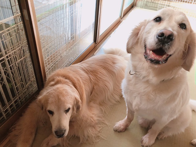 久しぶりにお泊りに来てくれたゴールデンちゃんたち。11歳の先輩シニアちゃんは、