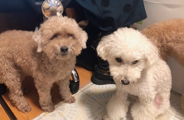 ちょっぴり控え目さんなトイプーちゃんたち。元気チームはすでにお庭やお部屋ではしゃいで
