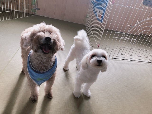 おっとりマイペースチームのトイプーちゃんとマルチーズちゃん。初対面でしたが、