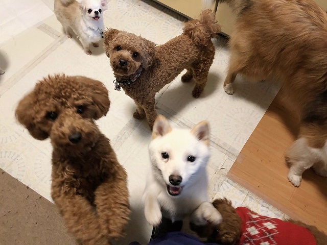 久しぶりに来てくれた豆しばちゃん、ルームメイトのトイプーちゃんたちとも初対面