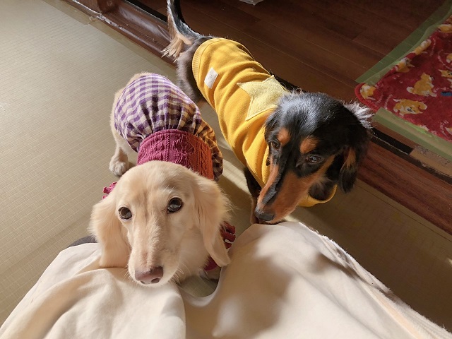 ダックスちゃんもやってきて、ふたりでしばしの甘えタイム。