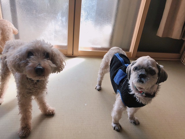 まったりシニアさんたち。お互いはじめましてでしたが、ゆっくりクンクンごあいさつも