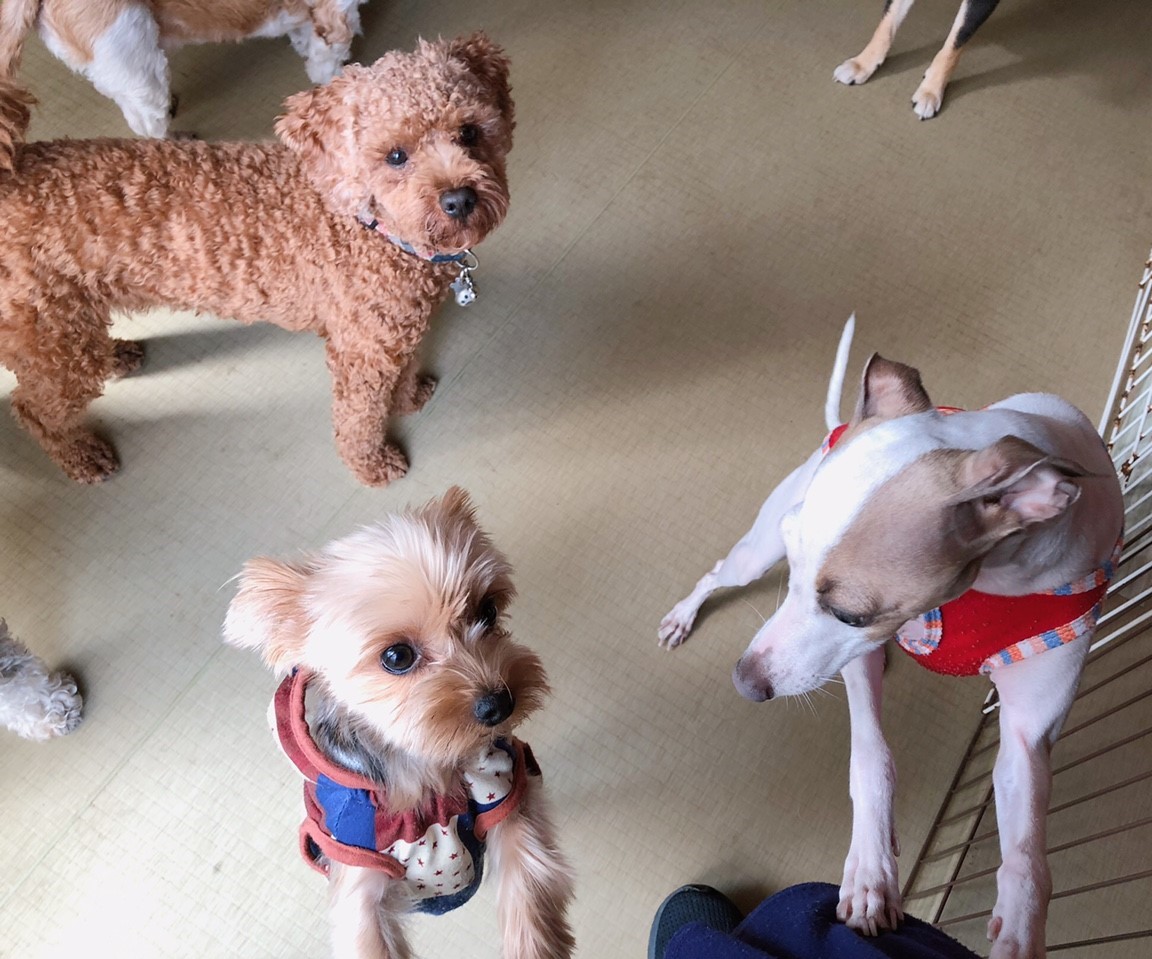 満員状態になるのですが(笑)その間にも、わんこ同士クンクンしたり、人間のそばにいるから