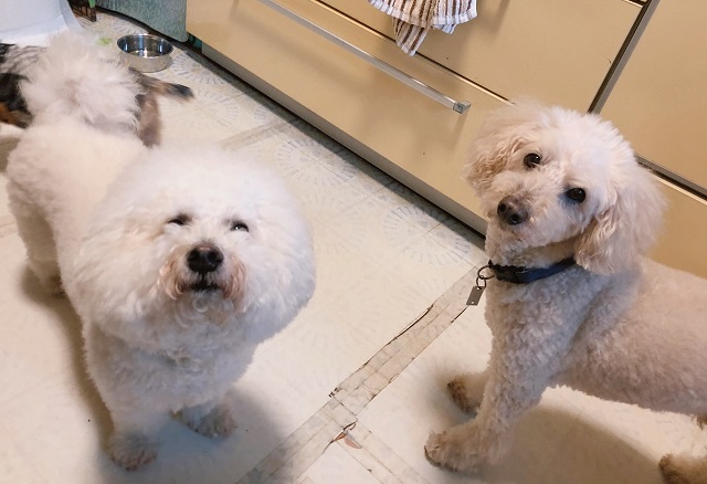 シロ白さんコンビが、つぶらな瞳でこちらを見つめておりました。みんなとのあいさつも