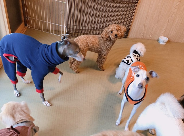 ちょっとお久しぶりに来てくれたイタグレちゃん、ヤンチャチームのトイプーちゃんと