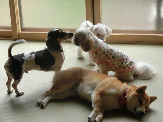 湘南のペットホテル、まったりタイムの和やかな雰囲気に包まれて、みんなも何だかとろ~んとしています。