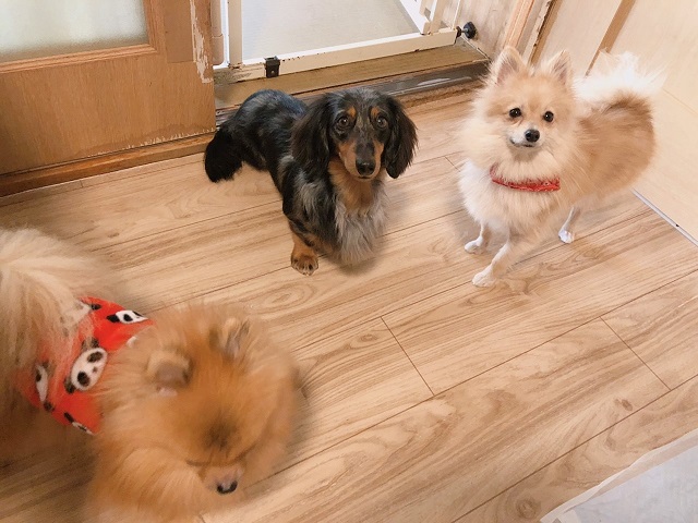 マイペースチームのダックスちゃんとポメちゃんたち。気ままにお部屋をウロウロしたり、