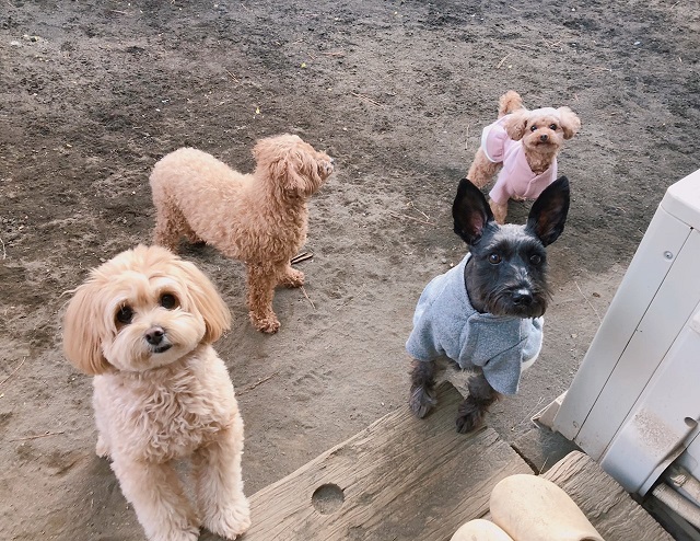 今回初滞在のシュナちゃんとお洋服を着たトイプーちゃん、それに久しぶりに来てくれた
