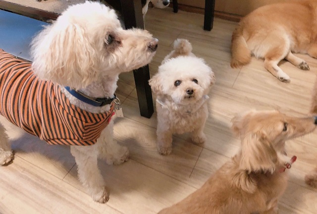 今回初滞在のトイプーちゃんも、お泊りしている間に一日の動きもだんだん把握できる
