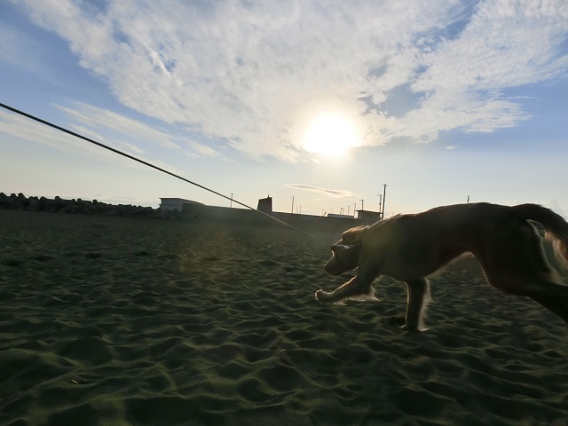 海岸で走るのがだーい好きで、走る姿も様になりますね。スイッチが入るとマジ走りになるので、