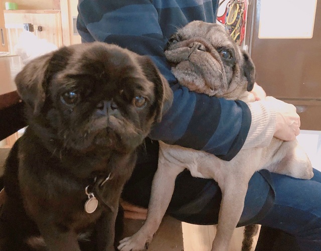 とろけそうなパグちゃんコンビ。”あけましておめでとうだね~”なんてお話をしながら