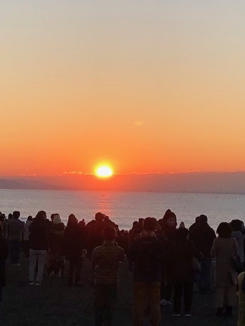 サザンビーチでは、変わらず元旦のご来光を拝む人たちでにぎわっていて、