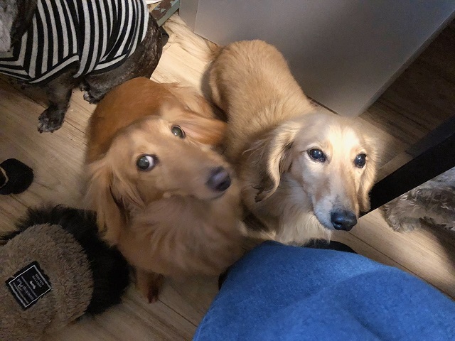 ずっと一緒に滞在していたダックスちゃんコンビ、控え目でちょっと慎重さん、でも