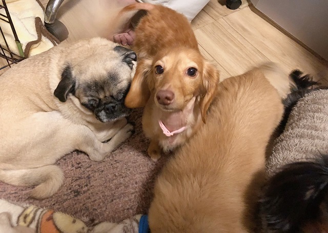 ダックスちゃんも、いつも身体を温めることを忘れず、大好きな人間にくっつくのは